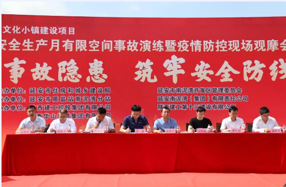 6月29日,2020年南泥湾开发区建设工程安全生产月有限空间事故演练暨疫情防控现场观摩会在陕建十三建公司南泥湾红色文化小镇项目举行。