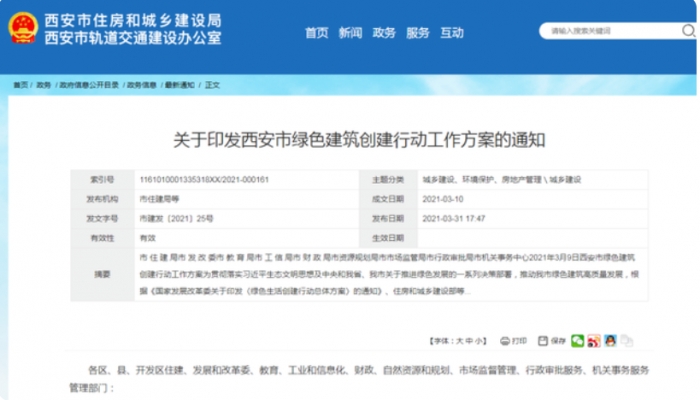 日前,西安市住建局发布关于印发西安市绿色建筑创建行动工作方案的通知。