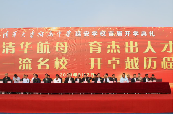 延安市副市长刘晓军,延安新区管委会党工委副书记、主任薛鹏春,延安大学党委书记薛义忠,延安大学校长张金锁,清华大学附属中学校长王殿军,陕建十三建公司董事长卜国平以及教育局、社会事务管理局、新区一中、新区江苏中学、陕建八建集团等相关领导出席活动。