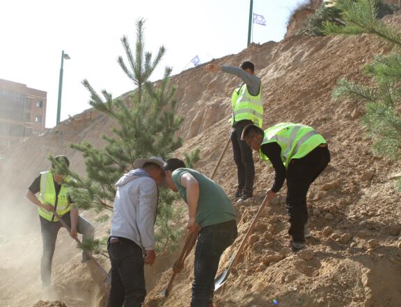 四月是万物复苏的季节,春天带着绿色的气息走来。为开展生态建设,营造延安新区绿色文化氛围,4月17日下午,伴着骄阳,十三建公司董事长卜国平同志与机关全体人员及延安大学新校区项目部人员共同参加义务植树活动。