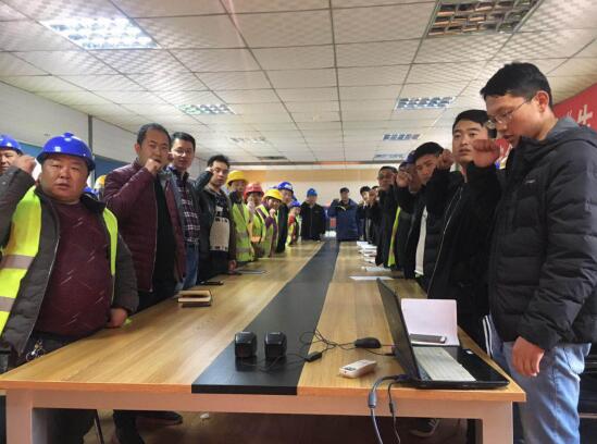 会上,全体人员观看陕建安全警示教育片《生命之鉴》。全体人员起立进行安全宣誓:一定遵守安全规定,时刻注意安全,听从指挥、遵章守纪,规范施工,不蛮干、不冒险,不留隐患、不出事故,为我的生命健康负责,为我的妻儿家庭负责,以实际行动确保安全生产。