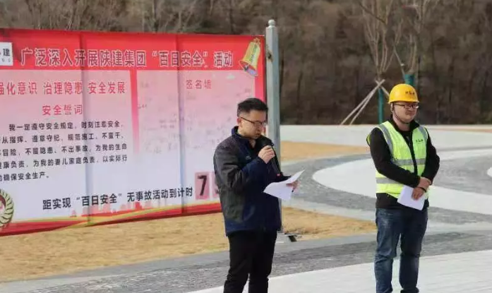 仪式上,陕建集团南泥湾红色文化小镇建设项目常务副经理屈晓东安排部署2019年重点安全注意事项,并贯穿落实集团公司“百日安全”活动的宗旨。会上各参建单位公司经理、项目经理积极讲述“百日安全”活动的重要性。开发公司工程管理部长白彦明并发表讲话。